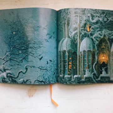 And if those illustrations weren’t enough–the double-page spread images are just lovely! I especially love this snowy snapshot of Hogwarts.