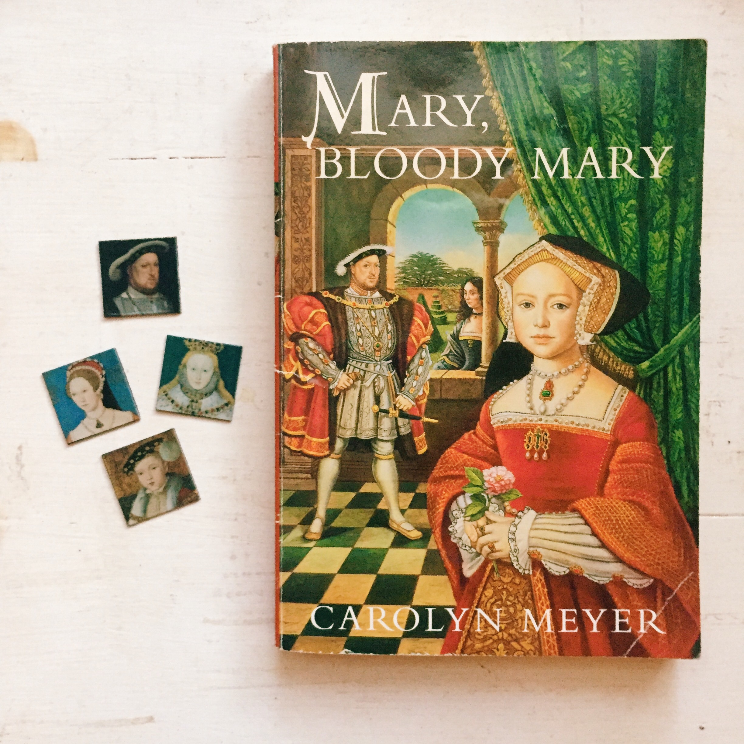 When I was a kid, I read a lot of historical fiction geared towards young readers. One subject I remember reading about a lot was the Tudor dynasty–Henry VIII and his six wives. There was one book written from Elizabeth I’s perspective, one from Mary Tudor’s perspective, even one, I believe about Lady Jane Grey. I found this one about Mary Tudor hiding in a box in my storage unit, and it was just too perfect to not share with this post!